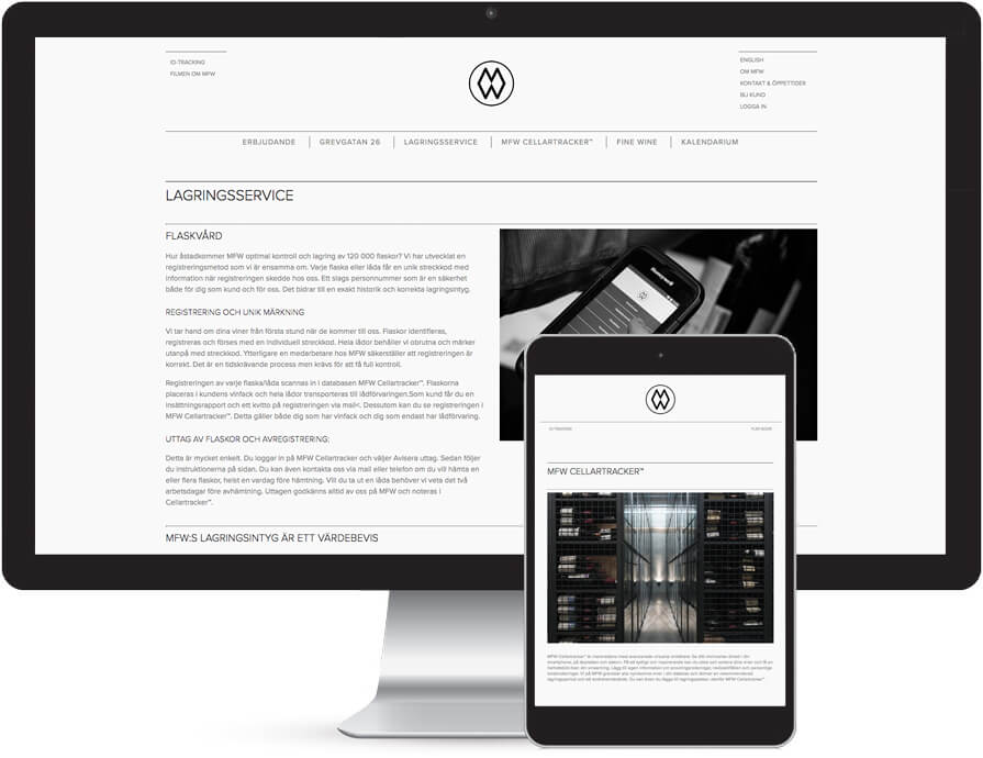 Vårt mest komplexa uppdrag. Vi utvecklar kontinuerligt MFW Cellartracker™. Här kan kunder hos MFW söka och sortera viner och få en tydlig helhetsbild över sin vinsamling och lägga till egen information om provningsnoteringar, inköpstillfällen och personliga smaknoteringar.